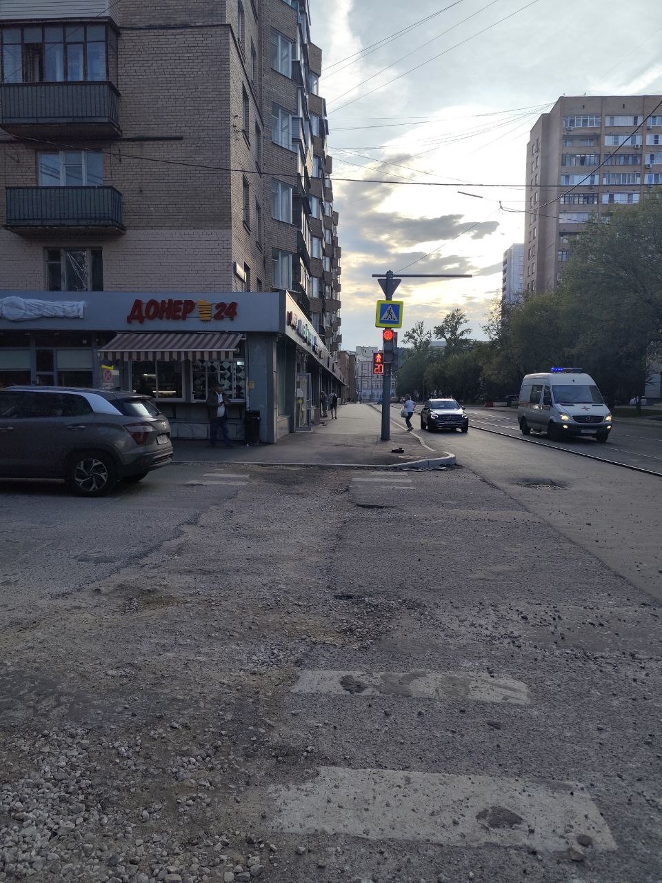 Дошли до перекрестка с улицей Трифоновская, переходим светофор и поворачиваем направо.